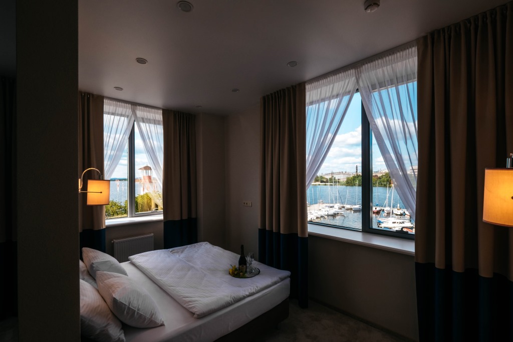 Современный новый отель 3* расположен на берегу Верх-Исетского пруда, на территории Губернского яхт-клуба "КОМАТЕК". В одном здании с отелем находится фитнес-центр с русской баней, турецким хамамом и массажным кабинетом. Оздоровительный центр будет открыт в 2019 году. Также у гостей отеля есть возможность арендовать яхту.